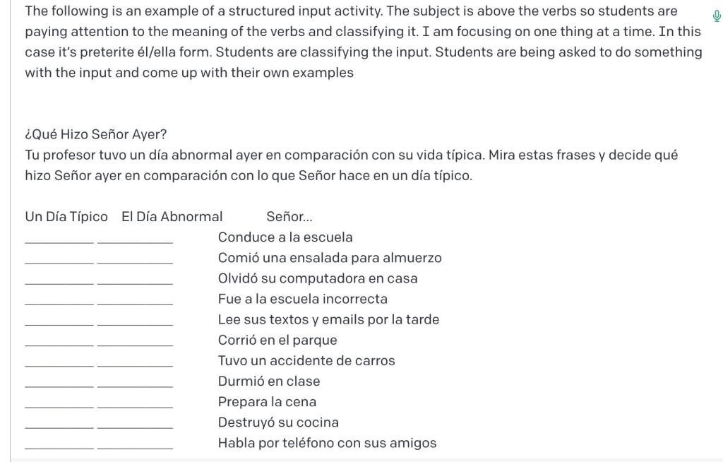 Good AI. So now I’ve trained my digital assistant to produce structured input activities and create modified elaborated input texts, to some degree.